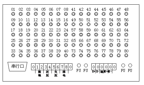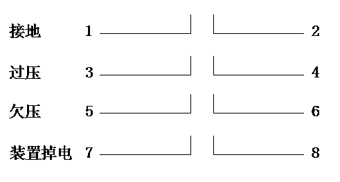 l 前面板設(shè)有4個(gè)指示燈:分別為接地報(bào)警、過壓報(bào)警、欠壓報(bào)警、通信指示。