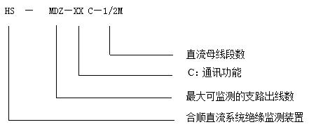 舉例說明:HS-MDZ-16C-1M:此型號(hào)具體含義為:直流系統(tǒng)為Ⅰ段母線,最多可監(jiān)測(cè)支路出線數(shù)為16路,同時(shí)帶通訊功能。